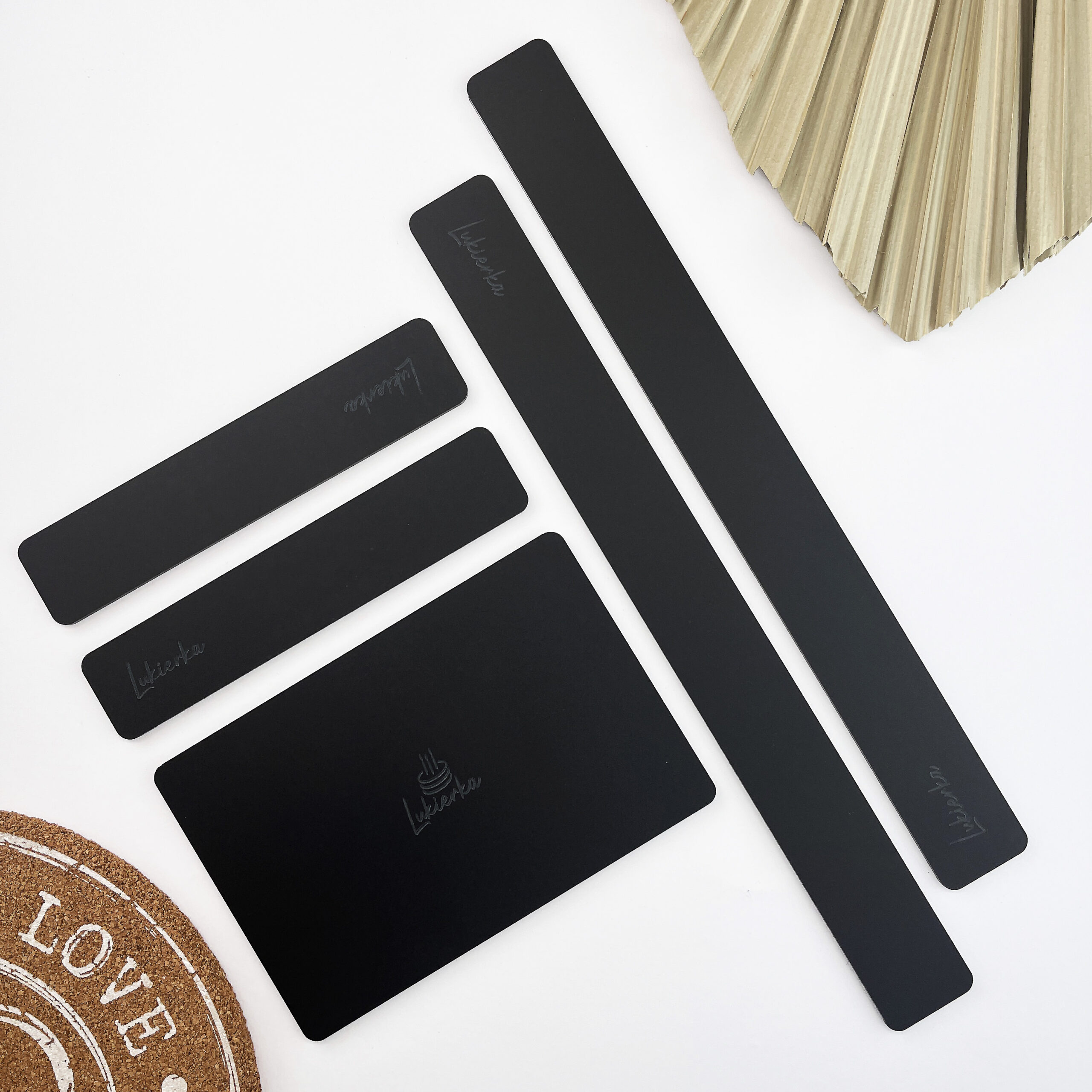 - dwie listwy dystansowe 3x30cm do równego rozwałkowywania masy oraz dwie listwy dystansowe 3x15cm z panelem 10x15cm do równego odciśnięcia napisu na masie bez obaw, że wciśnie się za głęboko lub za płytko, listwy silikonowe 2,9x15cm.