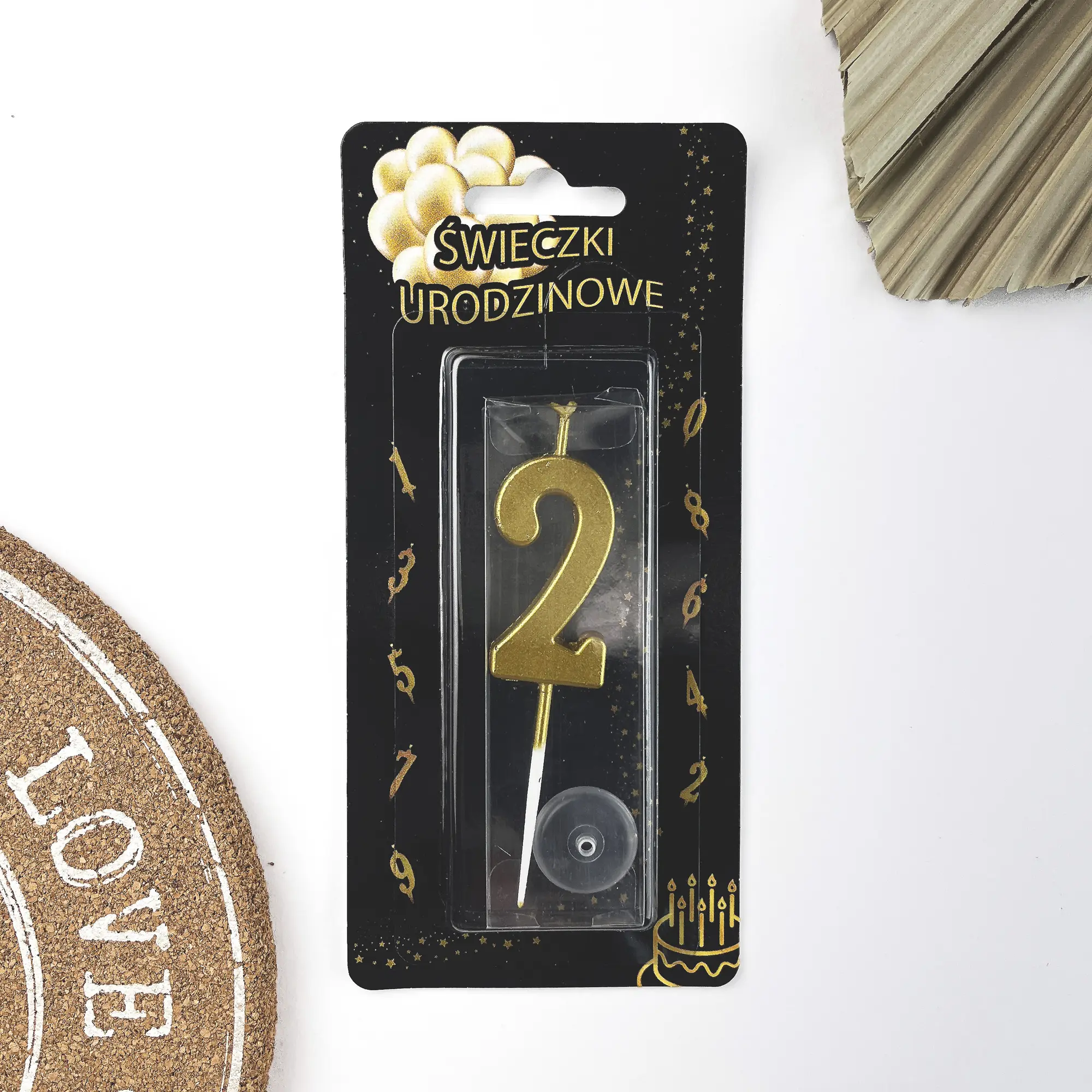 Świeczki urodzinowe będą idealnym wykończeniem tortu i spełnią każde wypowiedziane życzenie solenizanta. Świeczka złota z cyfrą 2 doda słodkościom indywidualnego charakteru. Świetnie sprawdzi się na drugie urodziny lub drugą rocznicę np. ślubu.