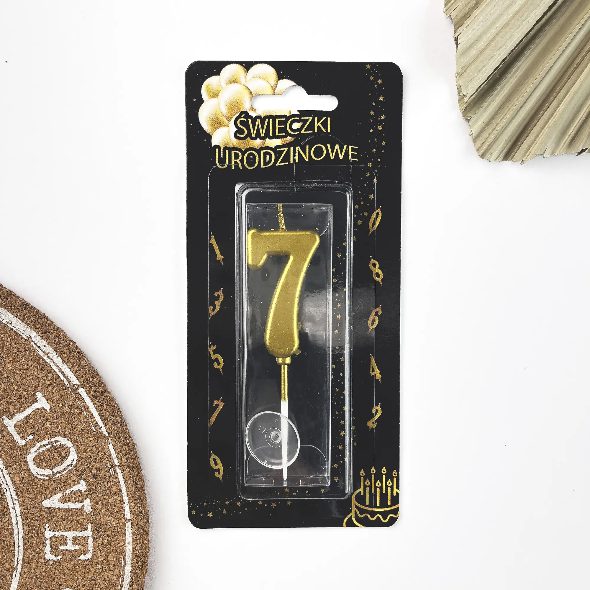 Świeczki urodzinowe będą idealnym wykończeniem tortu i spełnią każde wypowiedziane życzenie solenizanta. Świeczka złota z cyfrą 7 doda słodkościom indywidualnego charakteru. Świetnie sprawdzi się na siódme urodziny lub siódmą rocznicę np. ślubu.