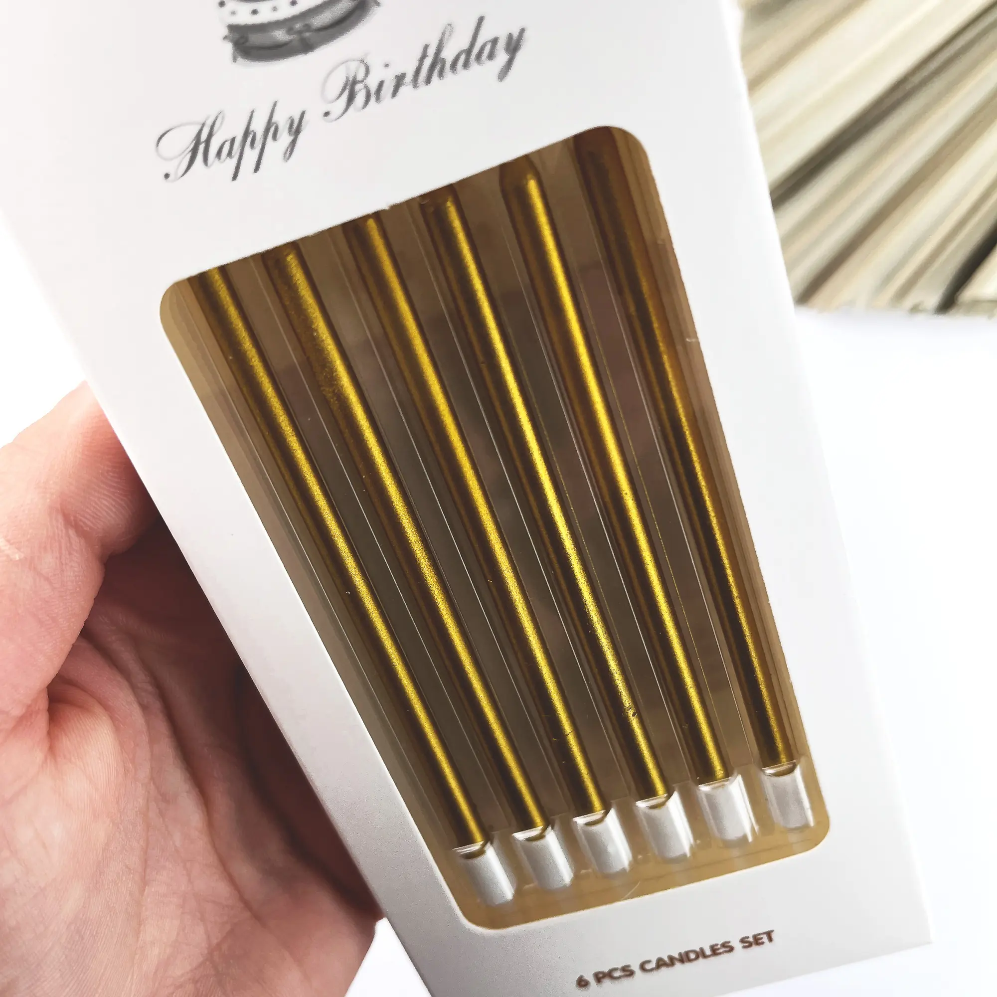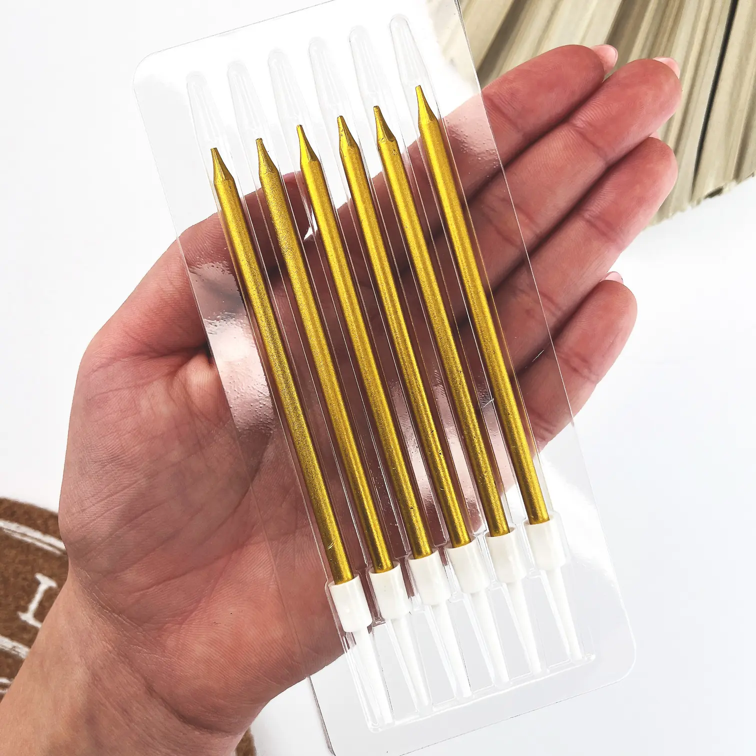 Świeczki urodzinowe złote będą idealnym wykończeniem tortu i spełnią każde wypowiedziane życzenie solenizanta. Świeczki dodadzą wypiekom elegancji i szyku, a ich prosty, uniwersalny kształt sprawi, że będą odpowiednie dla każdego rodzaju dekoracji na torcie.