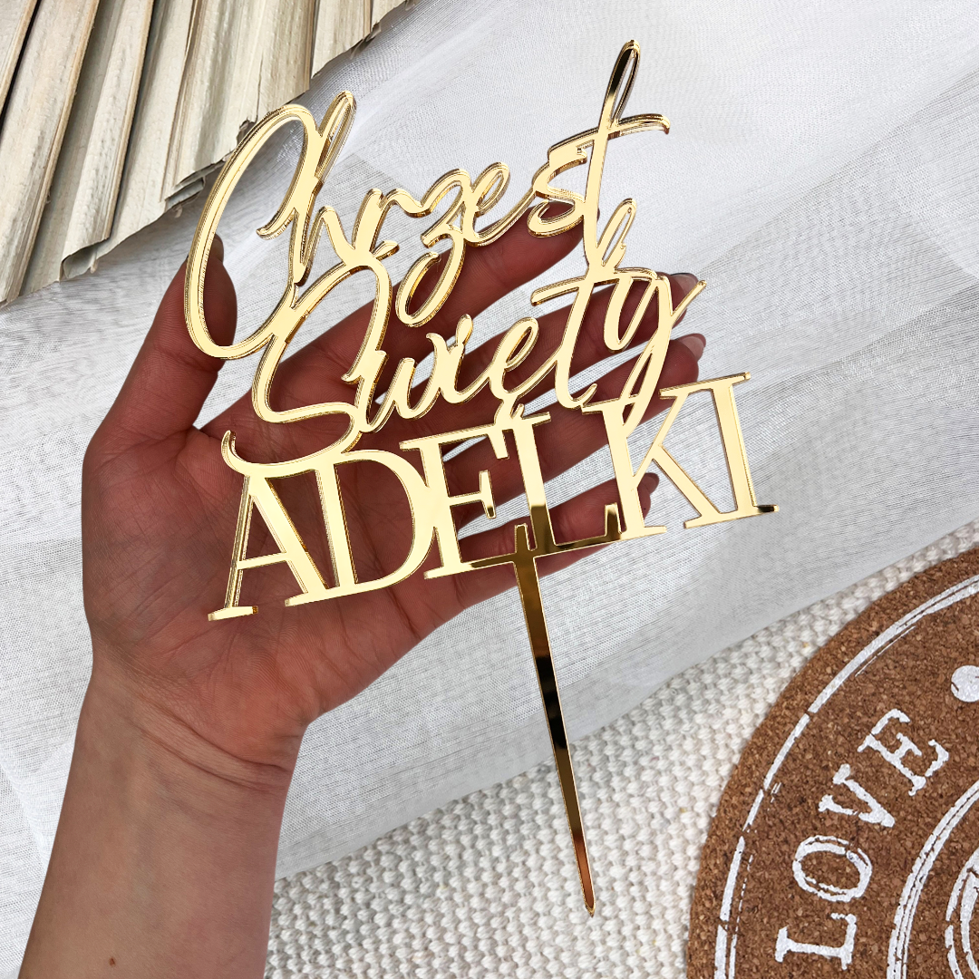 Chrzest Święty jest pierwszą ważną uroczystością w życiu dziecka! Dziesiątki pięknych zdjęć, wspaniałe kreacje  – będzie co wspominać! Całość doskonale wypełni elegancki torcik z tematycznym topperem “Chrzest Święty” z imieniem.