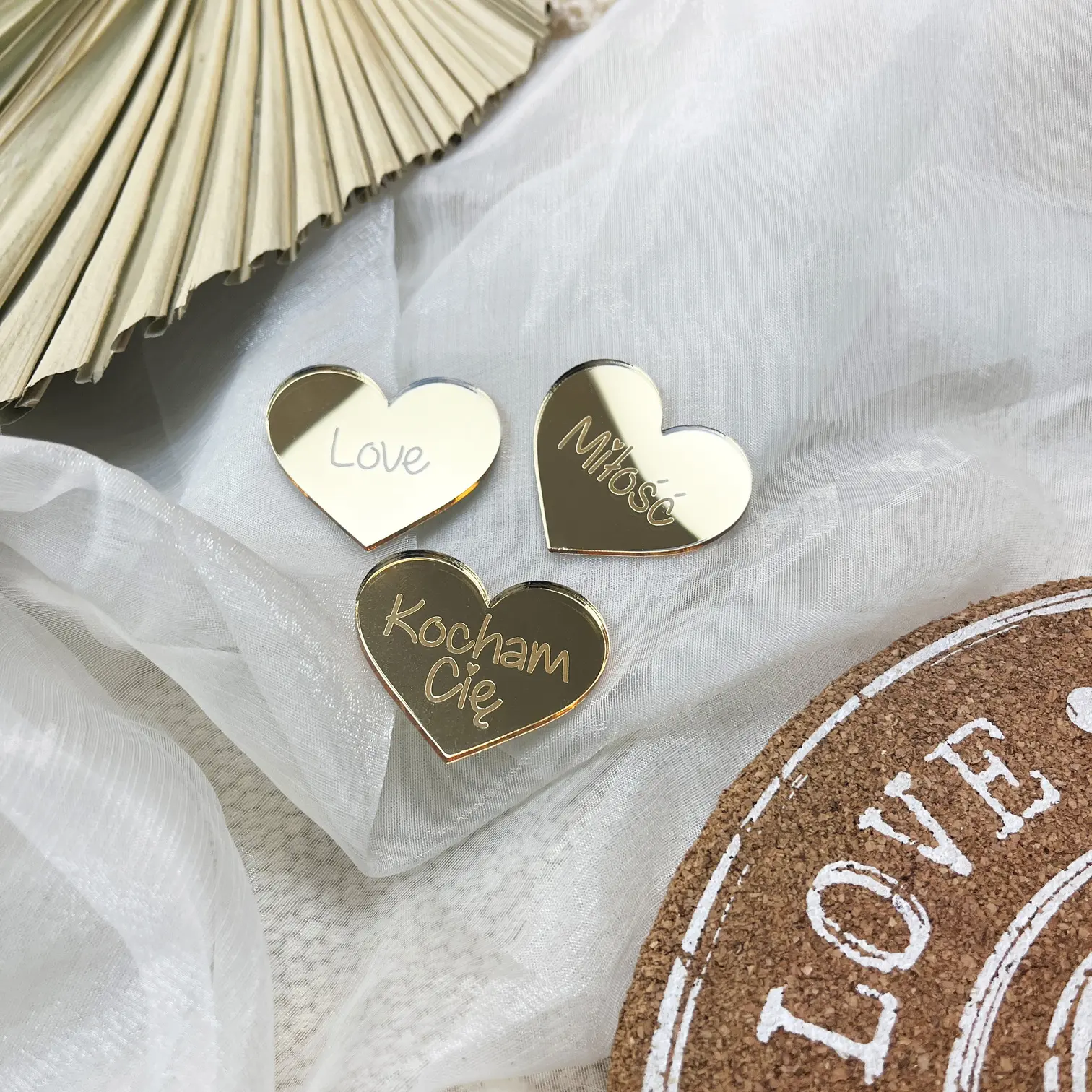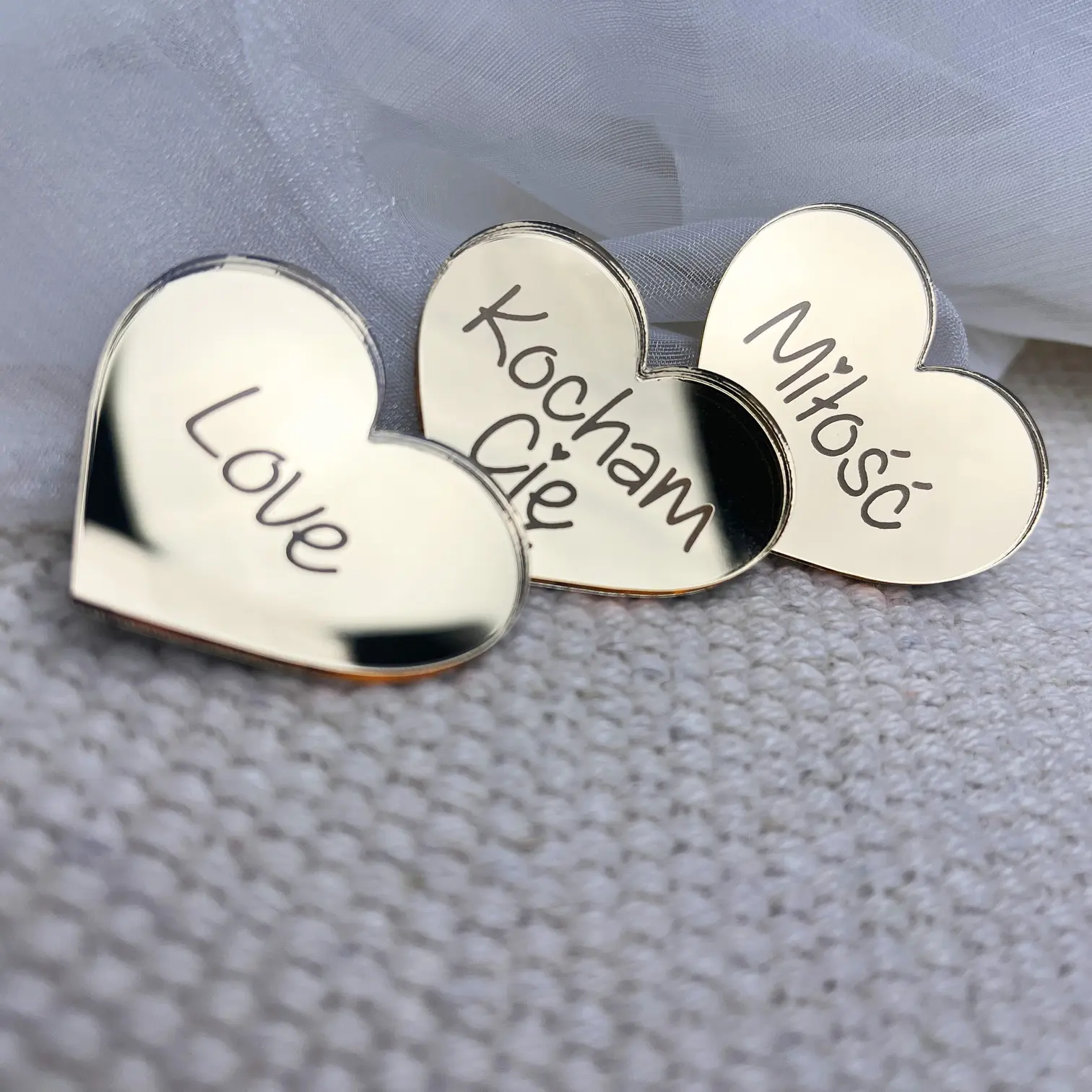 Dekor miłosny, weselny – zestaw 3 serc “Kocham Cię”, “Miłość”, “Love”