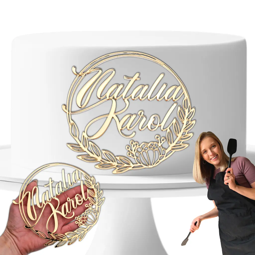 Ślub to najważniejszy dzień w życiu każdej pary! Wspaniałe fotografie, olśniewające stroje – to wspomnienia, które zostaną na zawsze! Idealnym dopełnieniem tej wyjątkowej okazji będzie elegancki tort! Dodany dekor ślubny z imionami w kole na bok tortu uświetni wygląd tortu i jeszcze bardziej podkreśli charakter uroczystości, czyniąc ją niezapomnianą i magiczną!