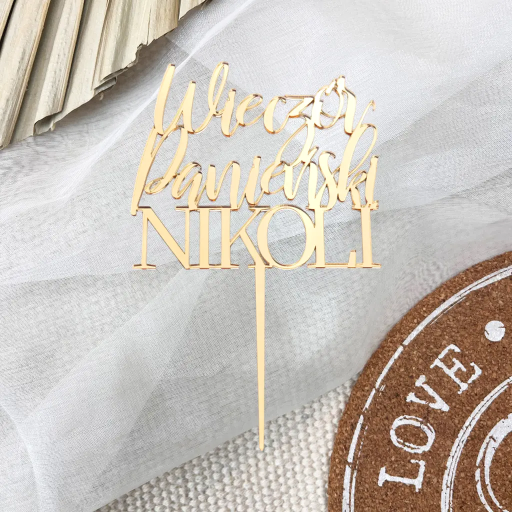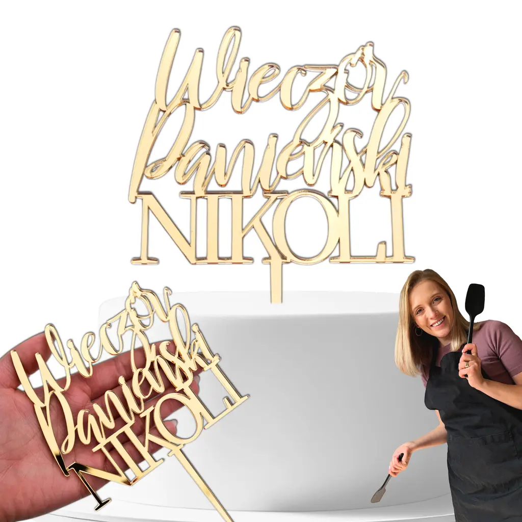 Wieczór Panieński jest ważnym wydarzeniem w życiu każdej przyszłej mężatki! Dziesiątki pięknych zdjęć, wspaniałe kreacje – będzie co wspominać! Całość doskonale wypełni elegancki torcik z topperem “Wieczór Panieński” z imieniem! Taki topper na Wieczór Panieński z pewnością uświetni tort, dodając mu uroku i sprawi, że będzie on elementem imprezy wartym zapamiętania!